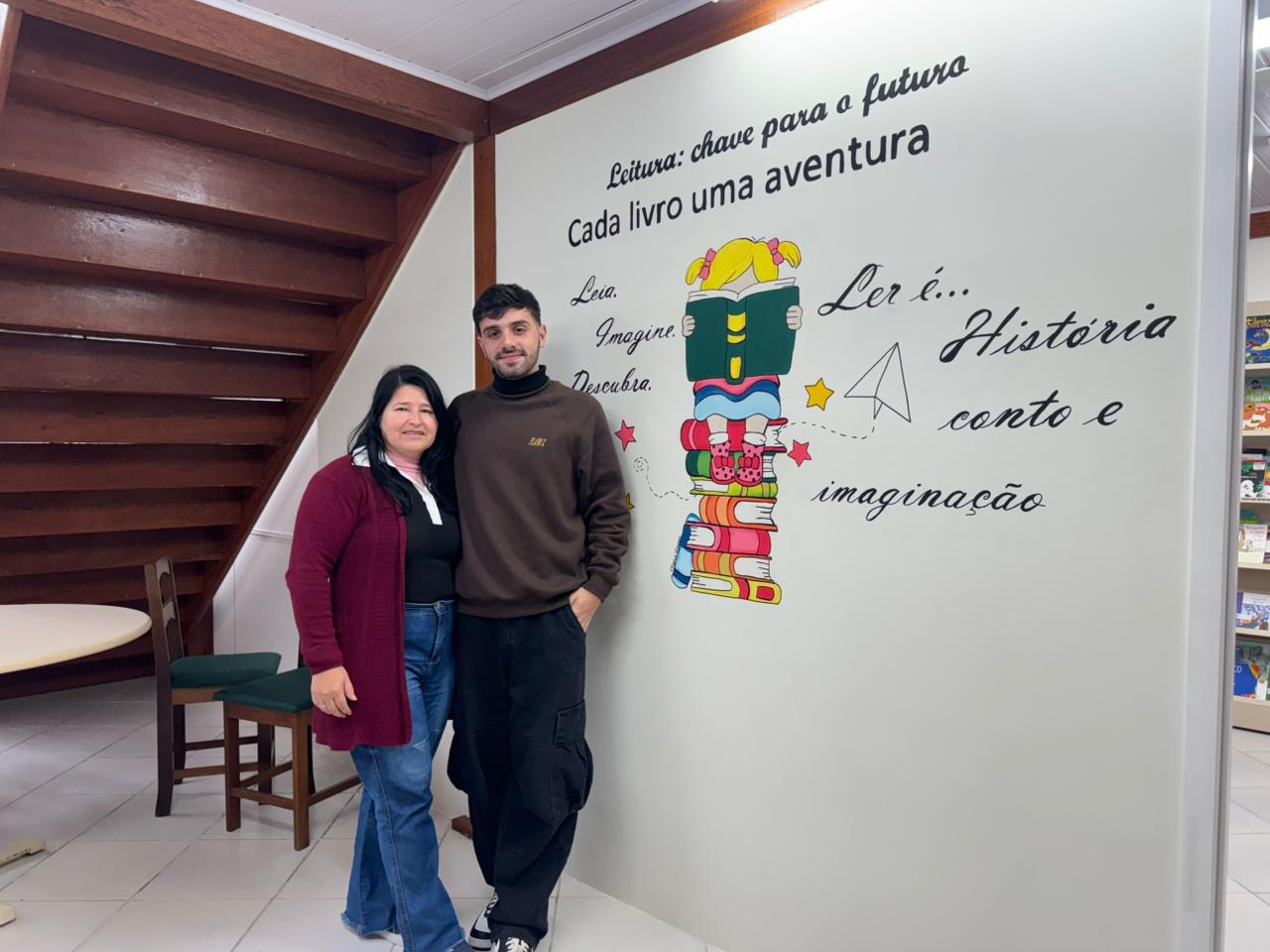 Nova arte de incentivo a leitura é instalada na parede da Biblioteca do Unibave