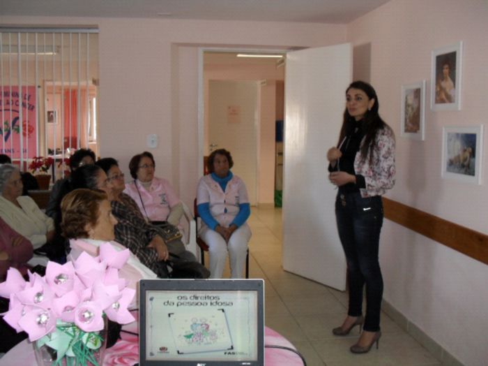 Em seguida, a palestra foi ministrada pela acadêmica Rúbia Regina da Silva, da 10ª fase do Curso de Direito do UNIBAVE. Na oportunidade a palestrante abordou temas como as penalidades para quem desrespeita ou abandona um cidadão da terceira idade, os direitos adquiridos na área do lazer, dentre outros assuntos. Após a palestra, foi feita uma dinâmica conduzida pela Psicóloga da Casa da Cidadania Olívia Weber. Nesta dinâmica as idosas tiveram a oportunidade de expor suas dúvidas e perceber o valor da vida e o mistério que a envolve. Com o término das atividades a equipe da casa da cidadania foi convidada a participar do café da tarde juntamente com o pessoal da terceira idade.