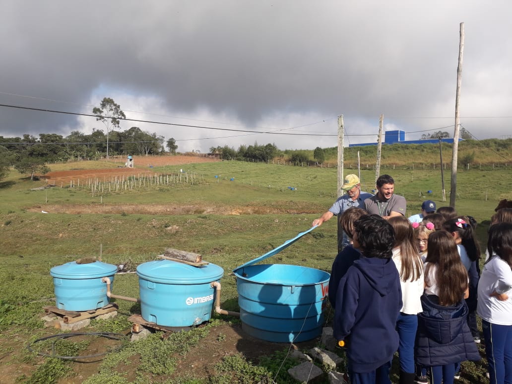 O professor Guilherme Doneda, que recebeu os alunos na fazenda, apresentou o sistema de composteira desenvolvido por meio de tanques de água, explicando todas as etapas e o seu processo de funcionamento. “Nestes tanques são processados todos os resíduos orgânicos gerados na fazenda experimental, bem como todos os resíduos orgânicos provenientes da Escola Barriga Verde”, explicou o professor.