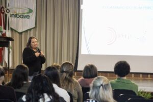 A neuropsicopedagoga Daniela Teixeira trouxe ao público a importância de estimular o cérebro para a preparação ao envelhecimento.