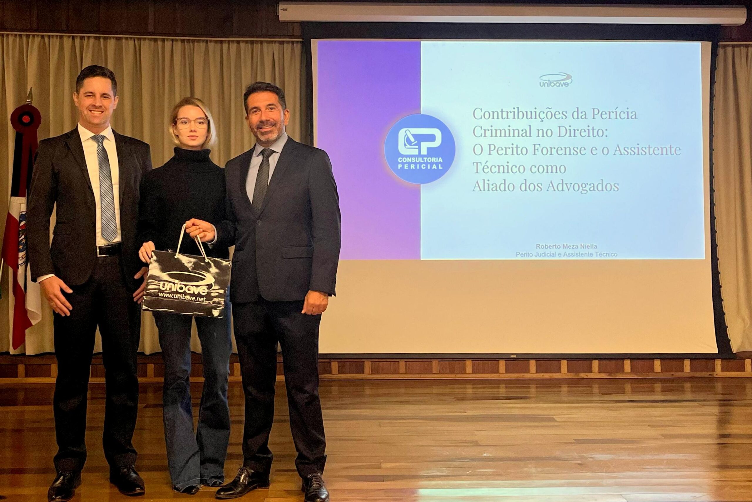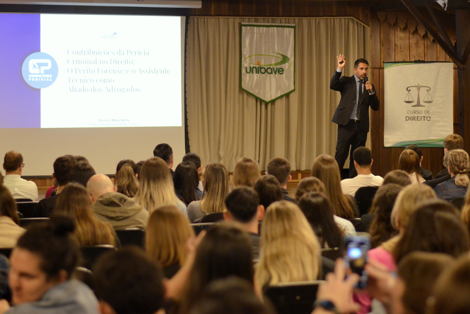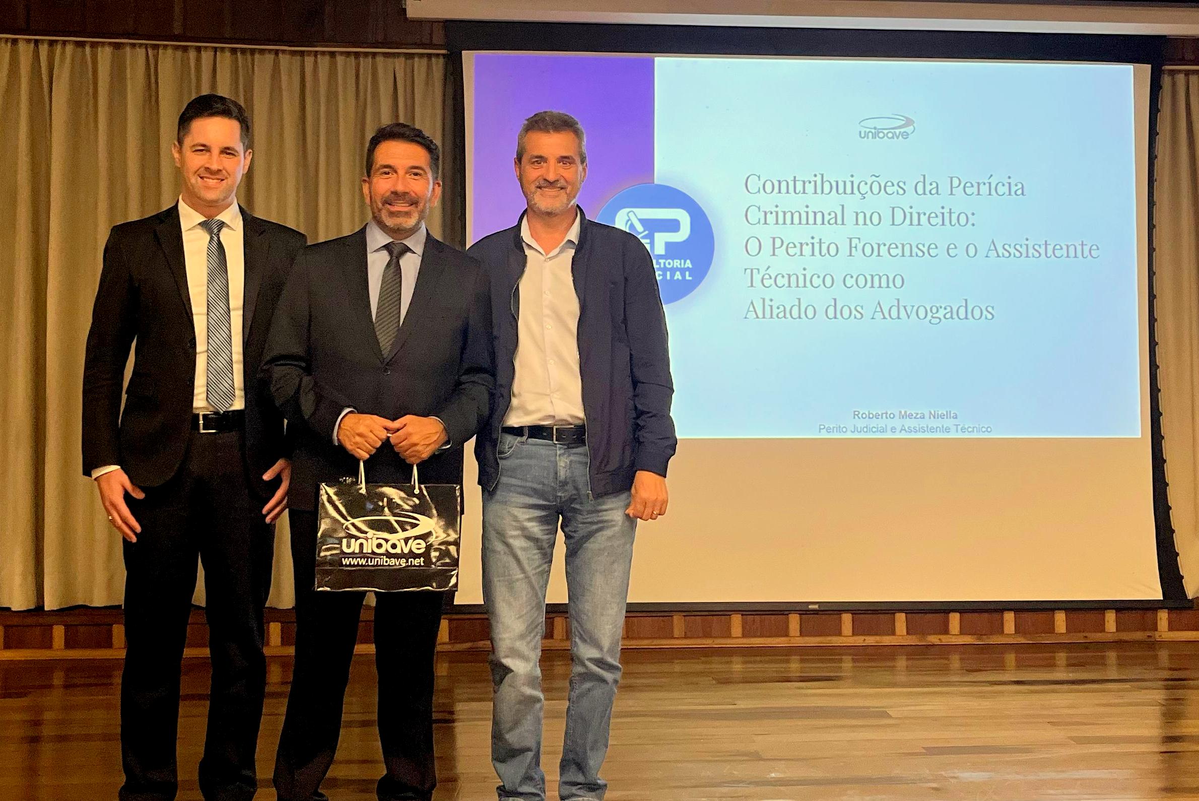 O Centro Universitário Barriga Verde (Unibave) deu início, nesta segunda-feira (14/04), às comemorações pelos 20 anos do curso de Direito. A primeira atividade foi a palestra “Contribuições da Perícia Criminal no Direito: o perito forense e o assistente técnico como aliados dos advogados”, realizada no Centro de Vivências e ministrada pelo perito Roberto Carlos Meza Niella.