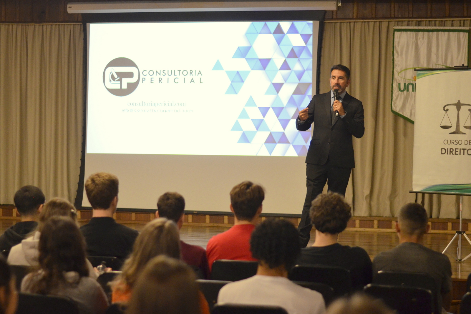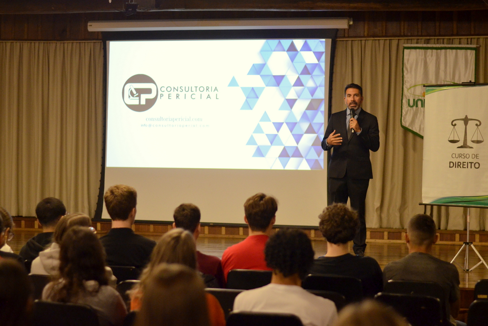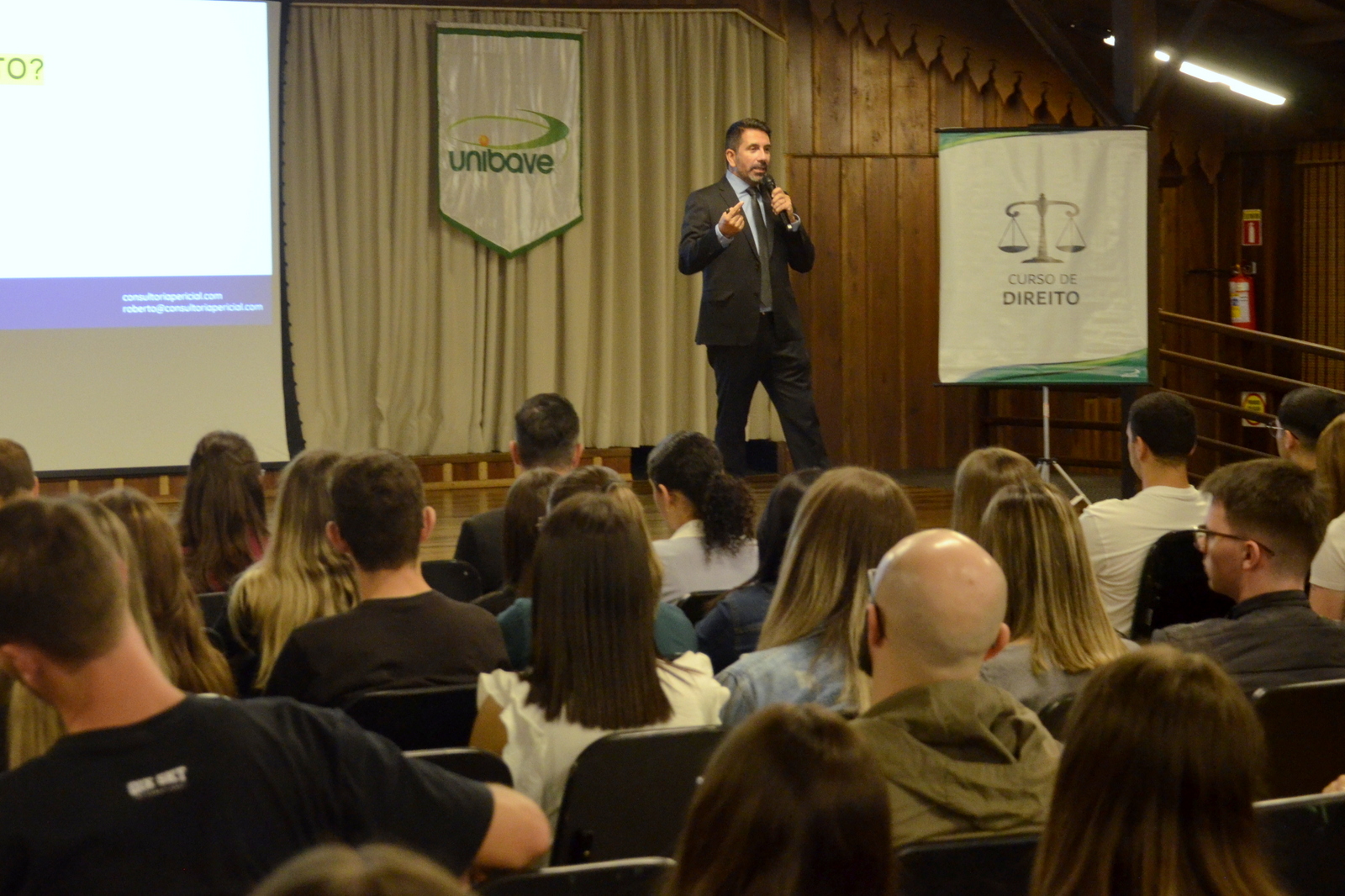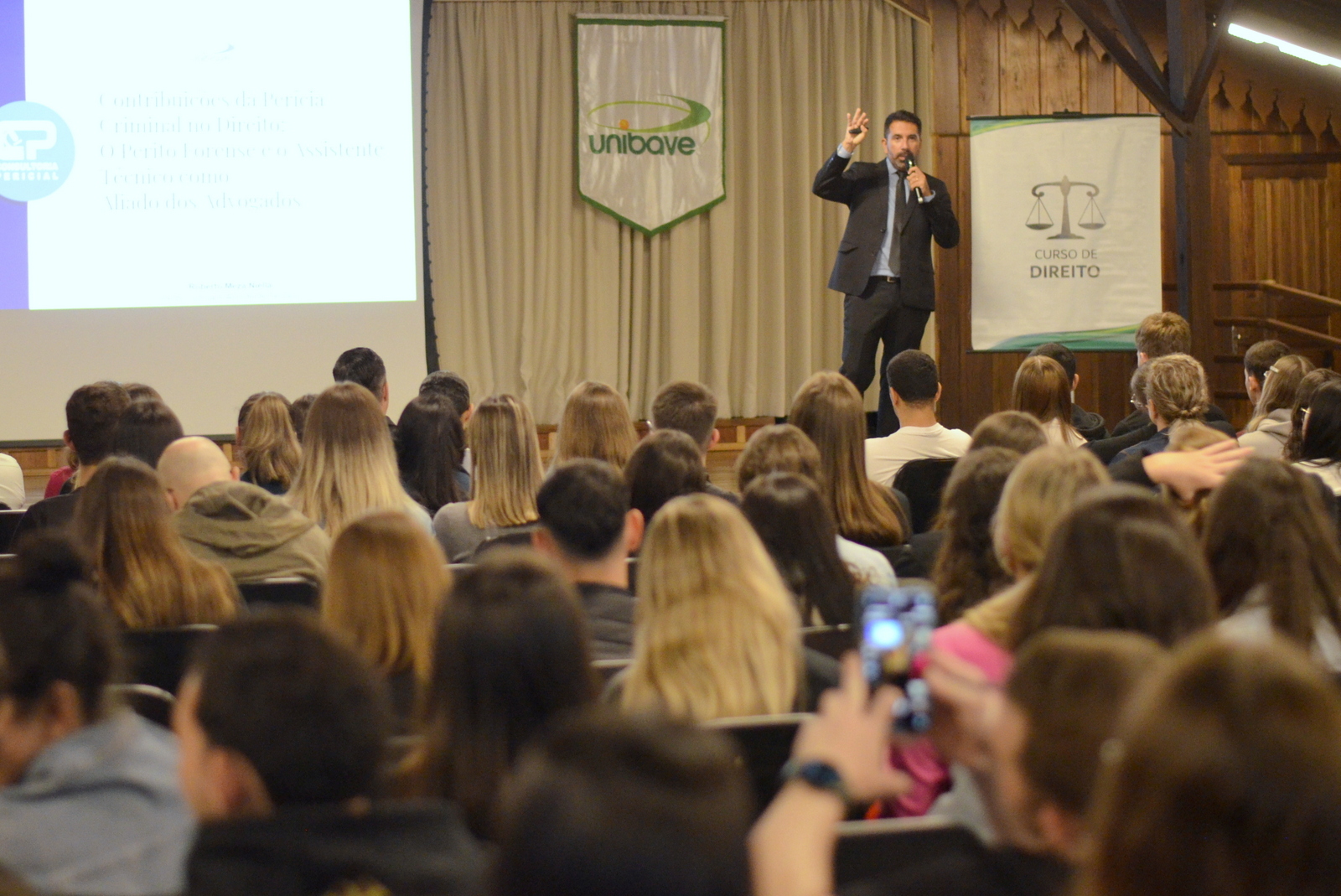 O Centro Universitário Barriga Verde (Unibave) deu início, nesta segunda-feira (14/04), às comemorações pelos 20 anos do curso de Direito. A primeira atividade foi a palestra “Contribuições da Perícia Criminal no Direito: o perito forense e o assistente técnico como aliados dos advogados”, realizada no Centro de Vivências e ministrada pelo perito Roberto Carlos Meza Niella.
