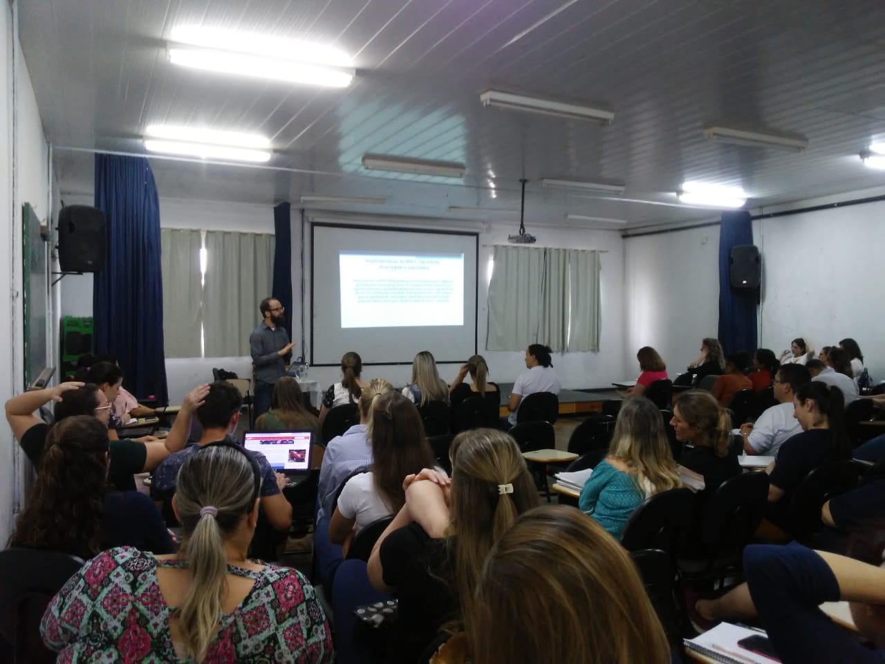 12 de novembro de 2019 - Comunidade CursosNo dia 6 de novembro, os professores do Curso de Pedagogia do Centro Universitário Barriga Verde – Unibave, ministraram uma Formação Continuada na Escola Estadual São Ludgero. Os professores Luiza Bressam Costa e William Candiotto falaram sobre as questões gerais da Base Nacional Comum Curricular (BNCC).