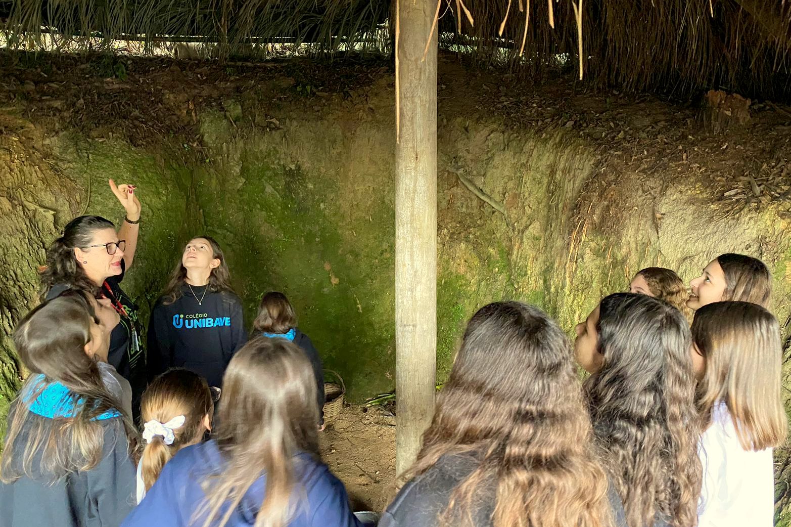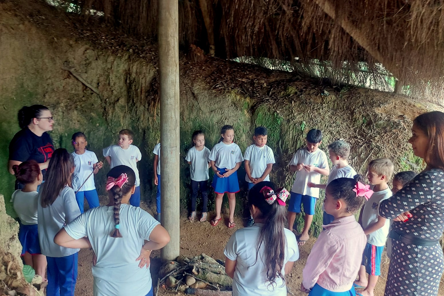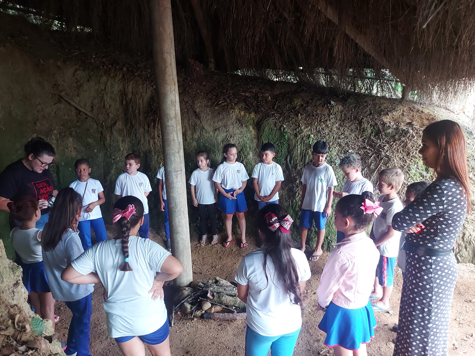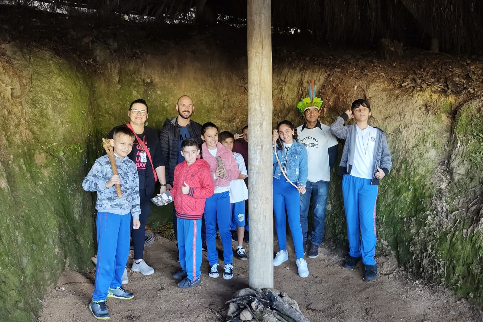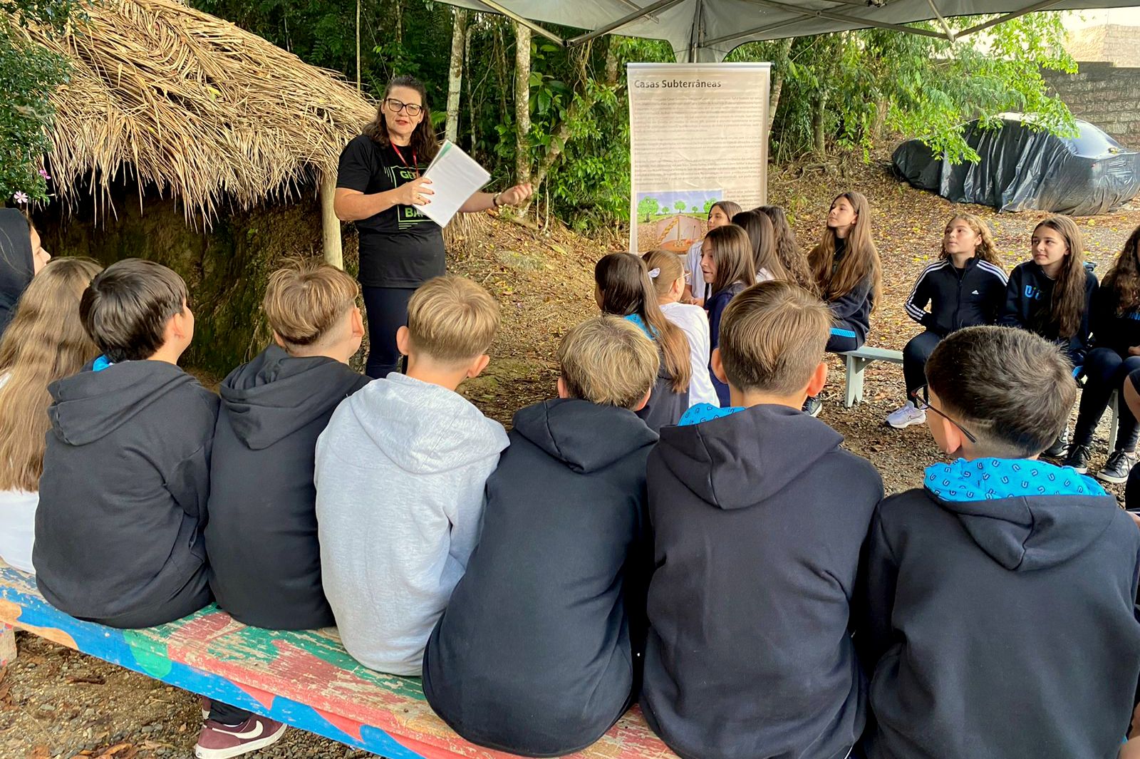 Os visitantes, acompanhados dos professores, participaram de uma conversa sobre as habitações indígenas, abordando os vários tipos de construções. “Construímos no espaço do Museu uma réplica de uma casa subterrânea e de um acampamento Xokleng. Organizamos o ambiente com acervo indígena e com alguns tipos de alimentos que eram coletados por eles”, descreve a colabora do Museu, Rosani Hobold Duarte.