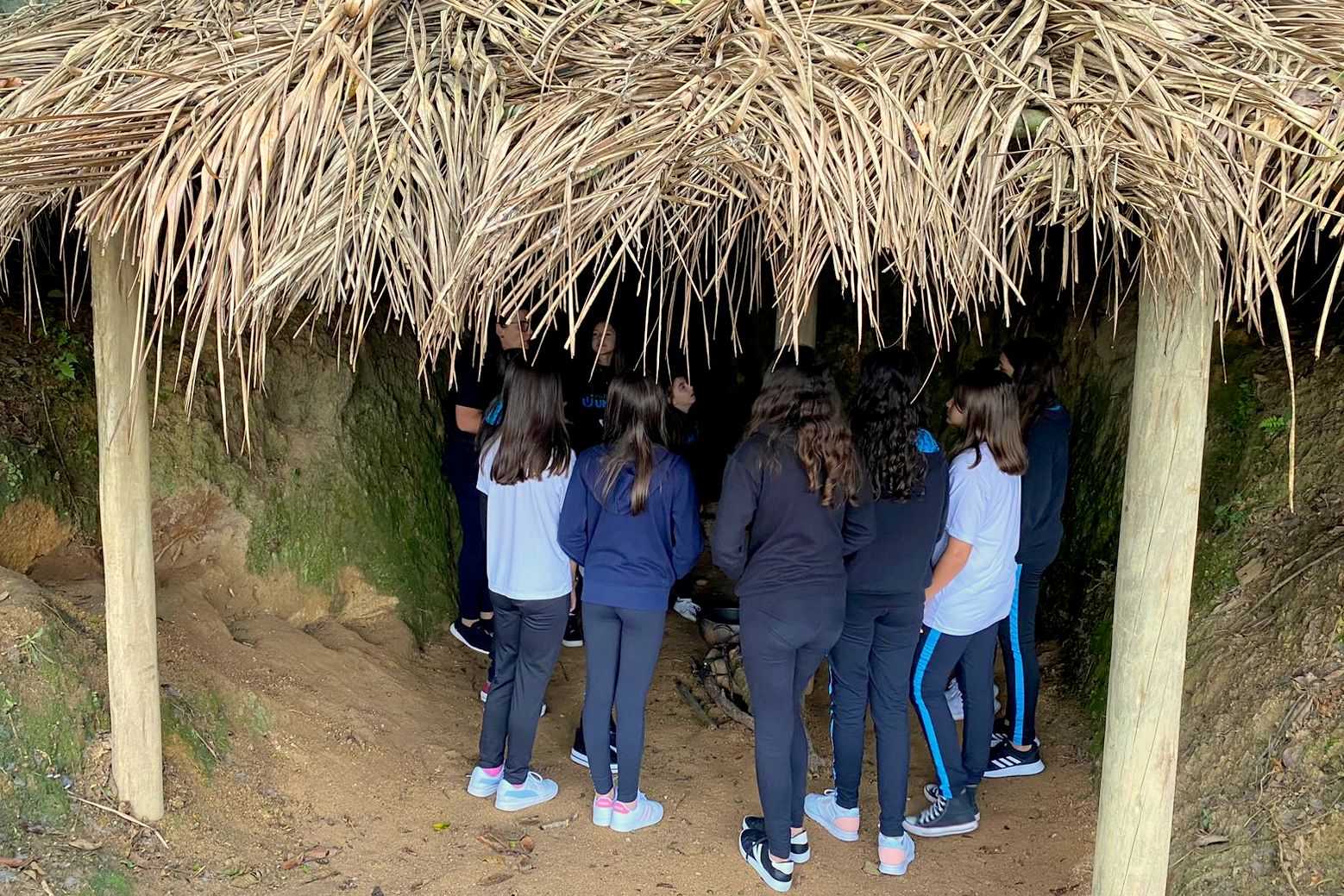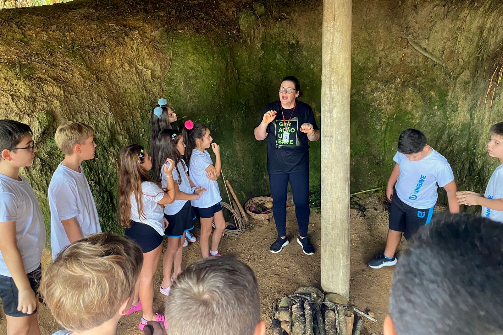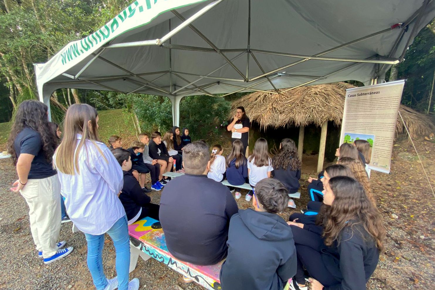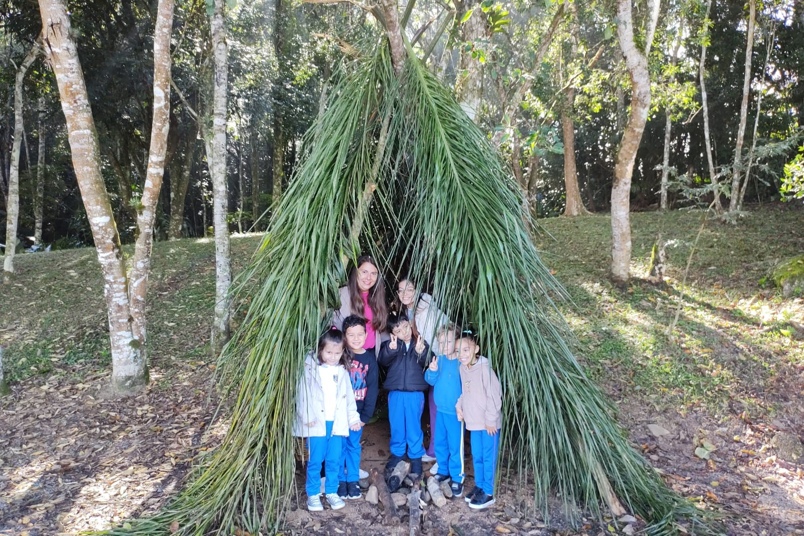 Os visitantes, acompanhados dos professores, participaram de uma conversa sobre as habitações indígenas, abordando os vários tipos de construções. “Construímos no espaço do Museu uma réplica de uma casa subterrânea e de um acampamento Xokleng. Organizamos o ambiente com acervo indígena e com alguns tipos de alimentos que eram coletados por eles”, descreve a colabora do Museu, Rosani Hobold Duarte.