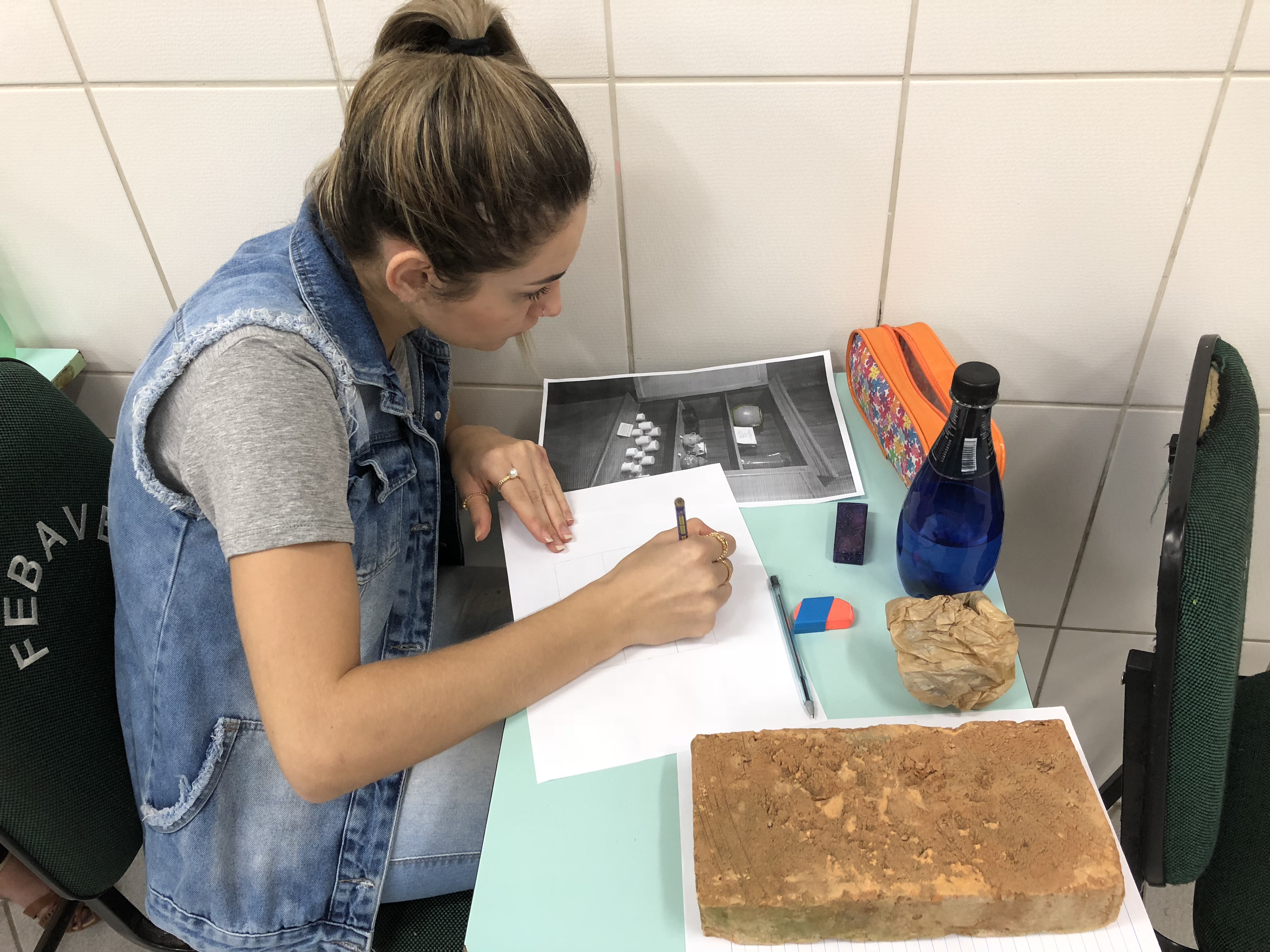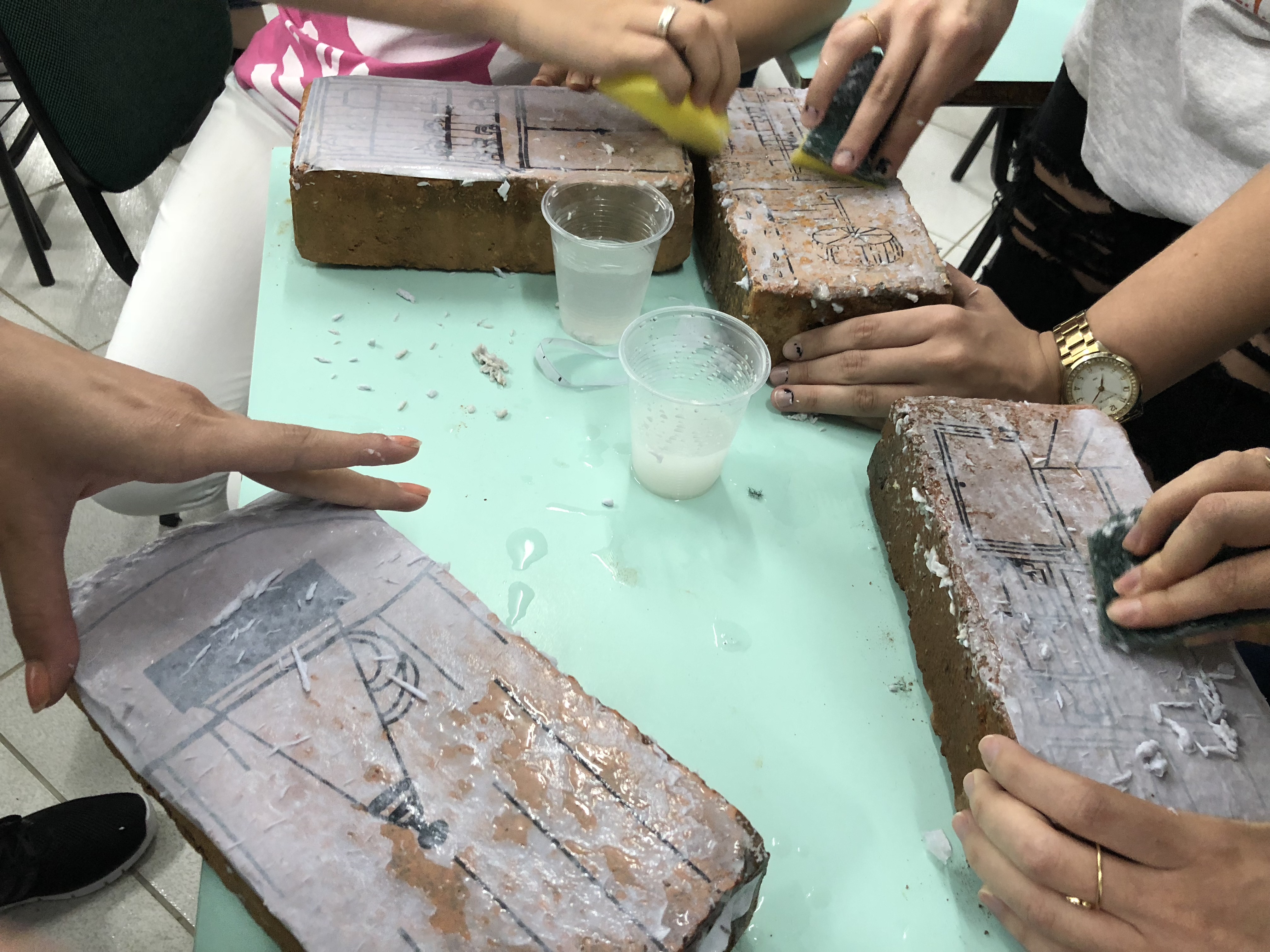 As imagens selecionadas pelos acadêmicos ficaram impressas em tijolos, que serão utilizados para a elaboração de um objeto de arte coletivo com abordagem na importância da memória. Este objeto ficará fixo em um dos pontos do campus do Unibave para registrar simbolicamente essa experiência.