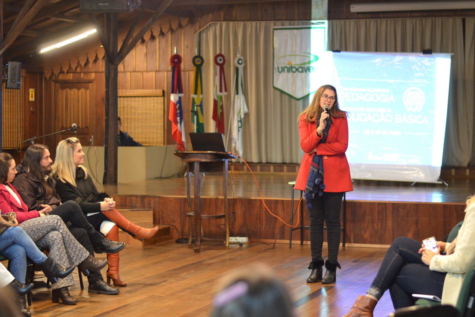 A 18ª Semana Acadêmica de Pedagogia encerrou (18/05) com a realização do 3º Fórum de Gestores da Educação Básica, no Centro Universitário Barriga Verde (Unibave). Na última noite, no Centro de Vivência, foram recebidos gestores que atuam em diferentes redes para uma roda de conversa sobre a implementação do Novo Ensino Médio.