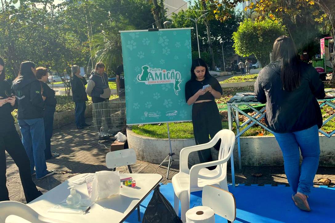 O projeto de extensão Amicão, ligado ao curso de Medicina Veterinária do Centro Universitário Barriga Verde (Unibave), esteve presente, no sábado (08/06), na Praça Celso Ramos, Centro de Orleans. Foram oferecidas brincadeiras para crianças, informações sobre como cuidar dos pets e, ainda, cães para adoção responsável estiveram disponíveis.