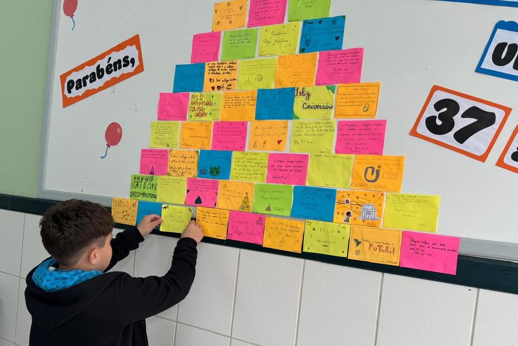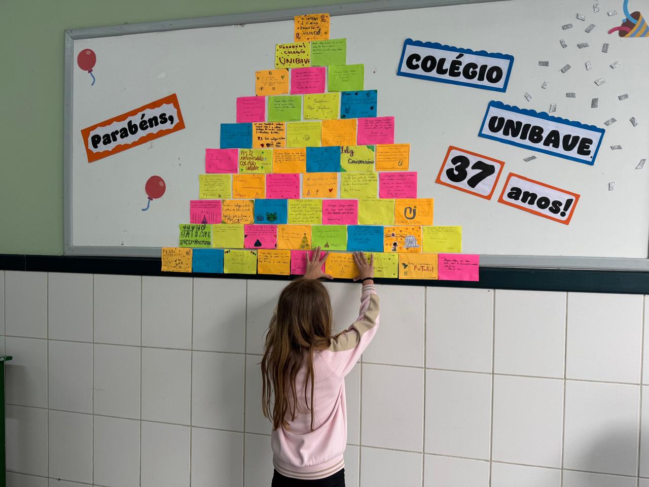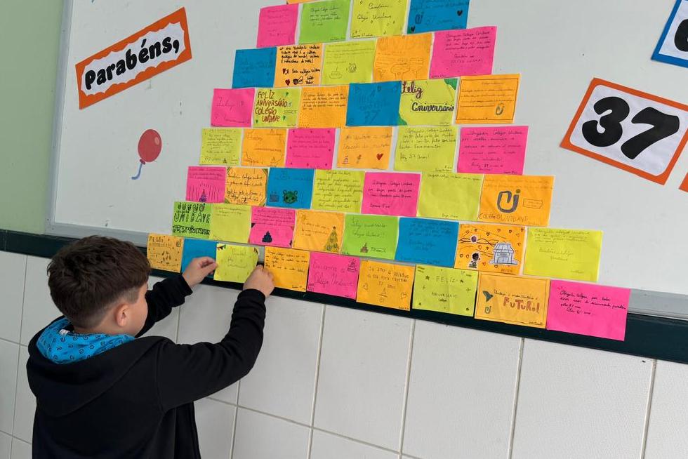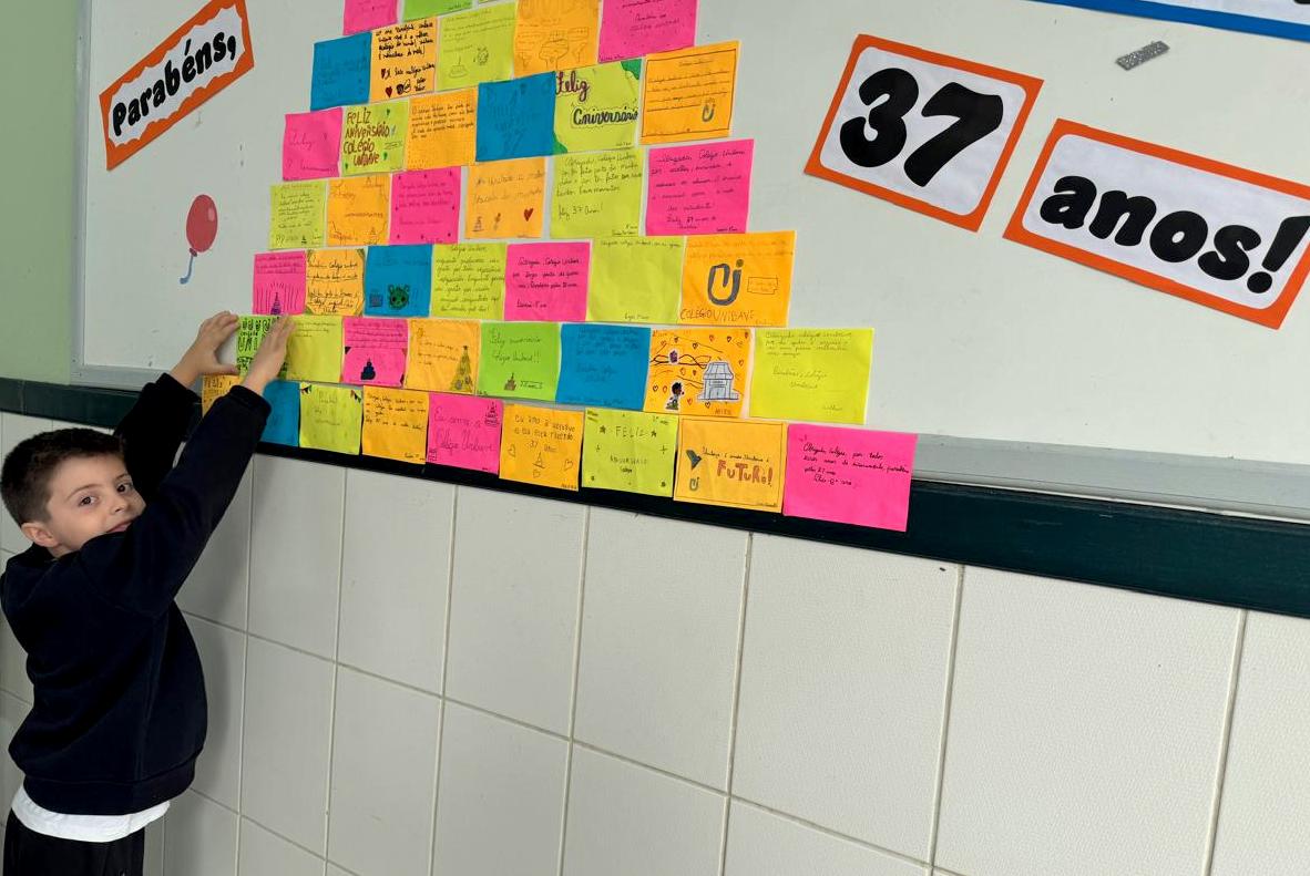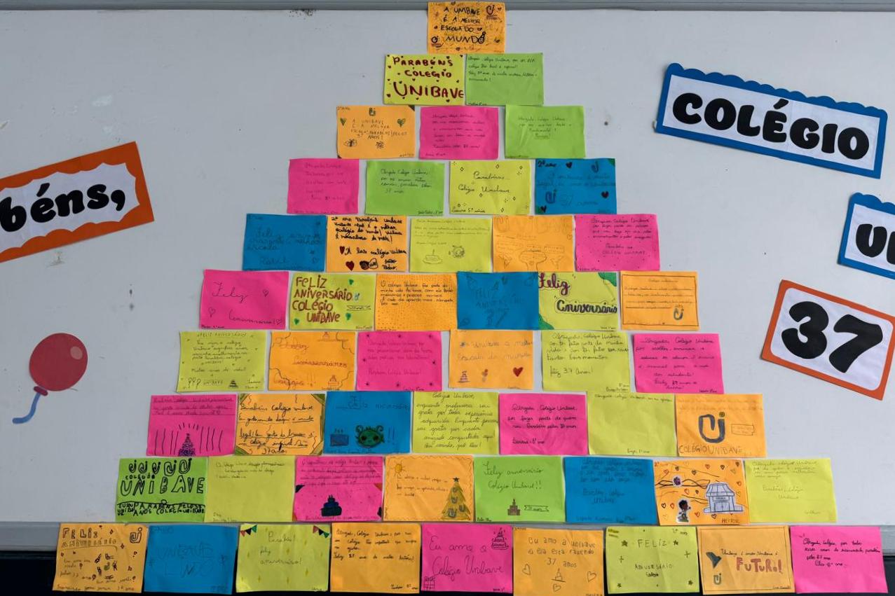 Tanto na unidade do Bairro Murialdo quanto na do Centro, os alunos do Colégio Unibave estão montando um mural coletivo com mensagens comemorativas. Na unidade do Centro haverá bolo e o tradicional “Parabéns a você”.