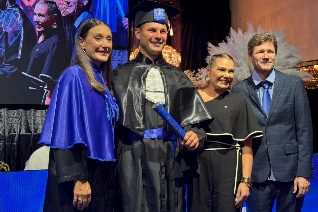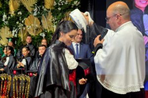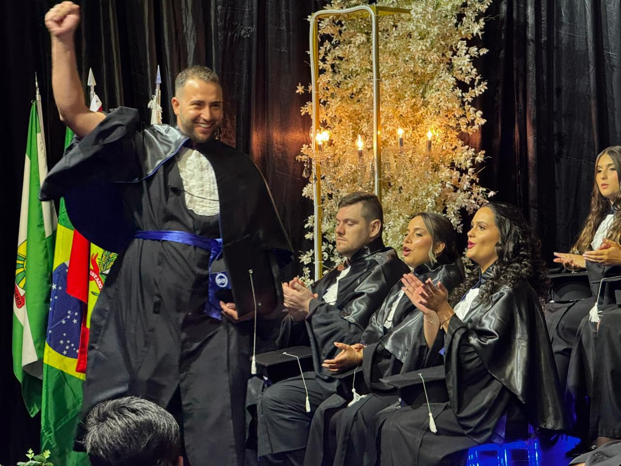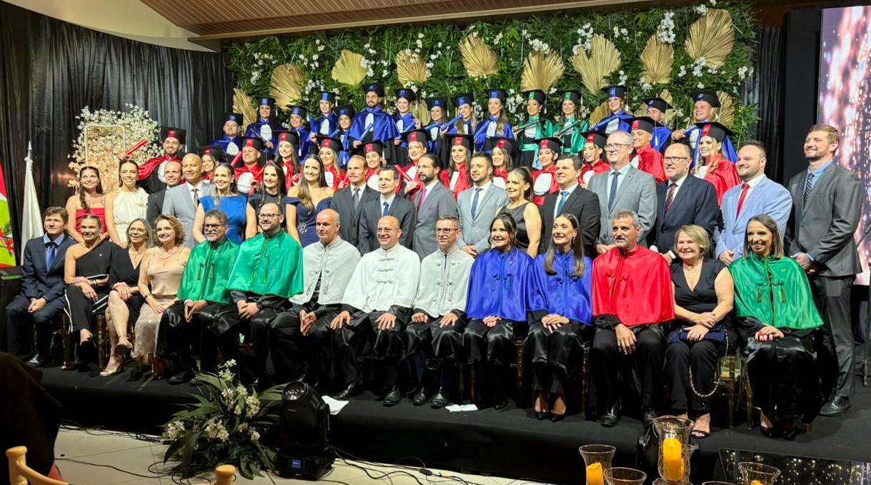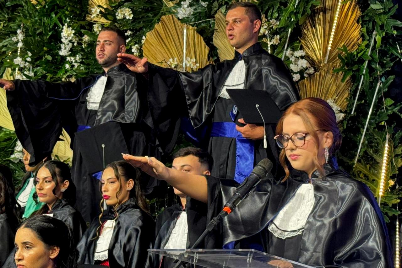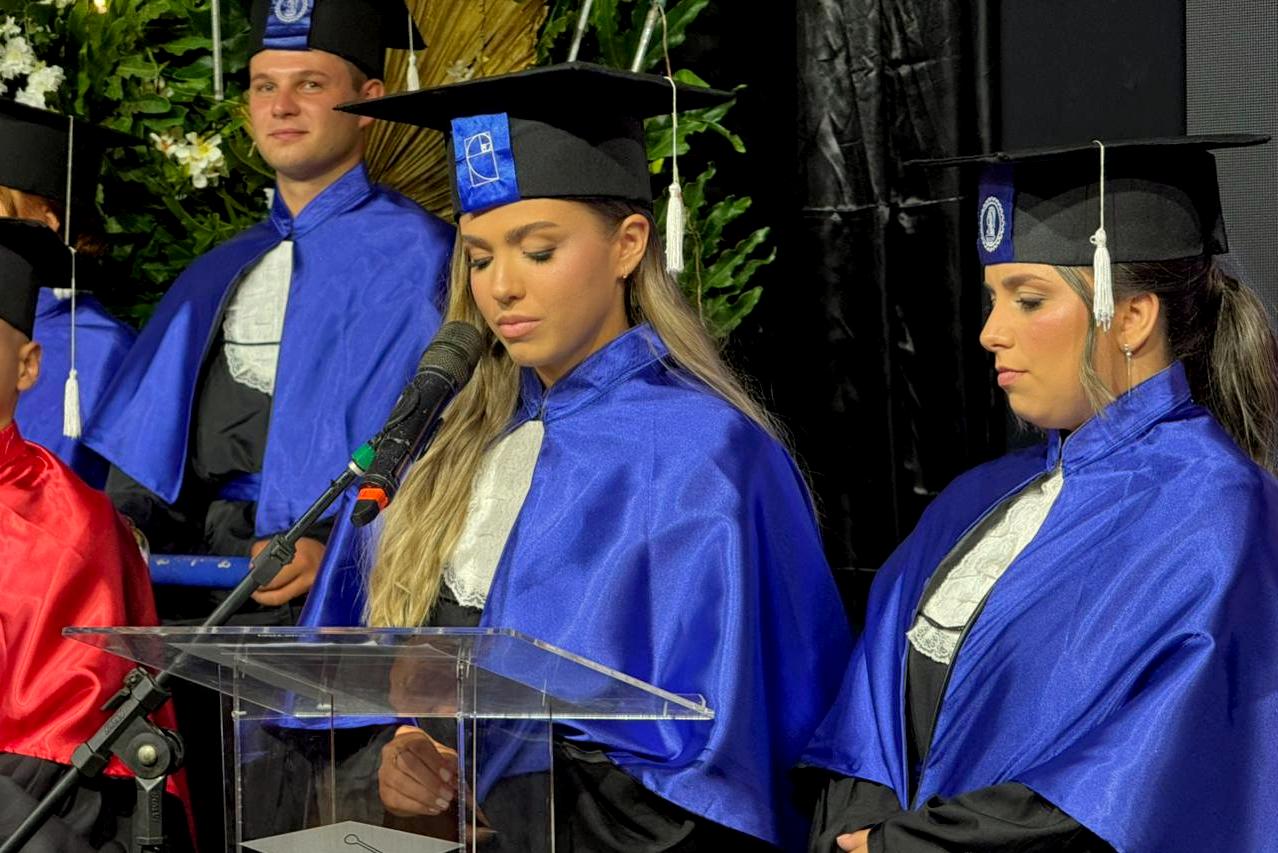 A cerimônia foi presidida pelo reitor, Guilherme Valente de Souza, que parabenizou os novos profissionais pela conquista e destacou a importância da formação acadêmica para o desenvolvimento pessoal e profissional. Como costuma enfatizar em solenidades de formatura, ele incentivou os graduados a continuarem investindo em conhecimento e qualificação ao longo da carreira.