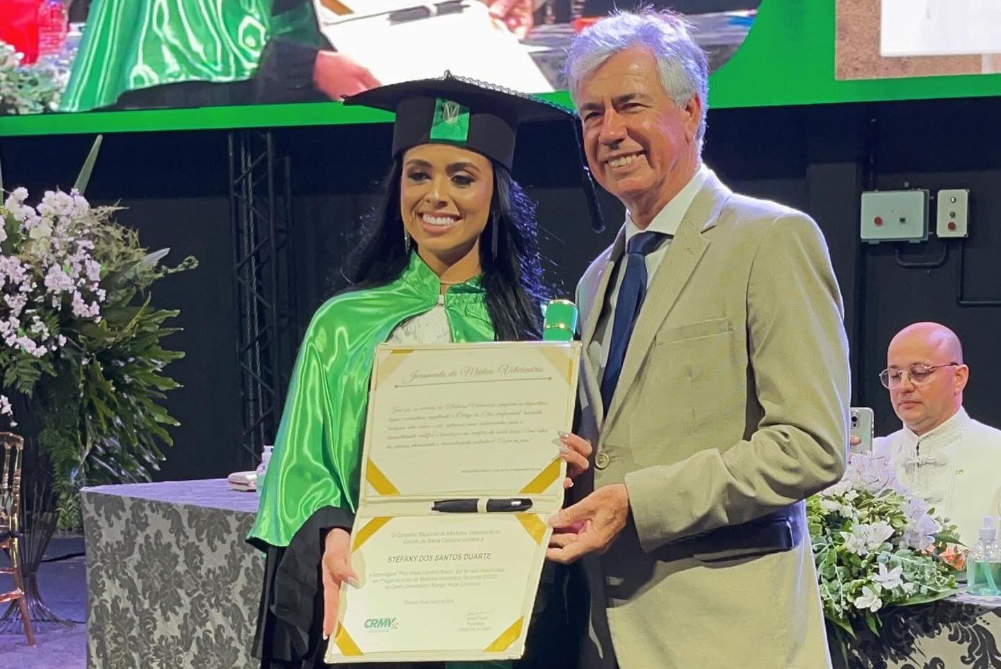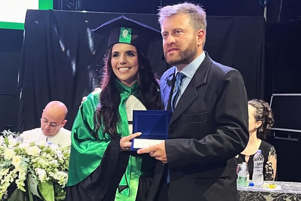 O reitor Guilherme Valente de Souza, que também é coordenador do curso de Medicina Veterinária, parabenizou os formados, dizendo que se sente privilegiado por participar como reitor e coordenador da cerimônia de outorga de grau, com o apoio da esposa, professora do curso e diretora do Hospital Veterinário do Unibave (HVU), Livia Gonçalves.