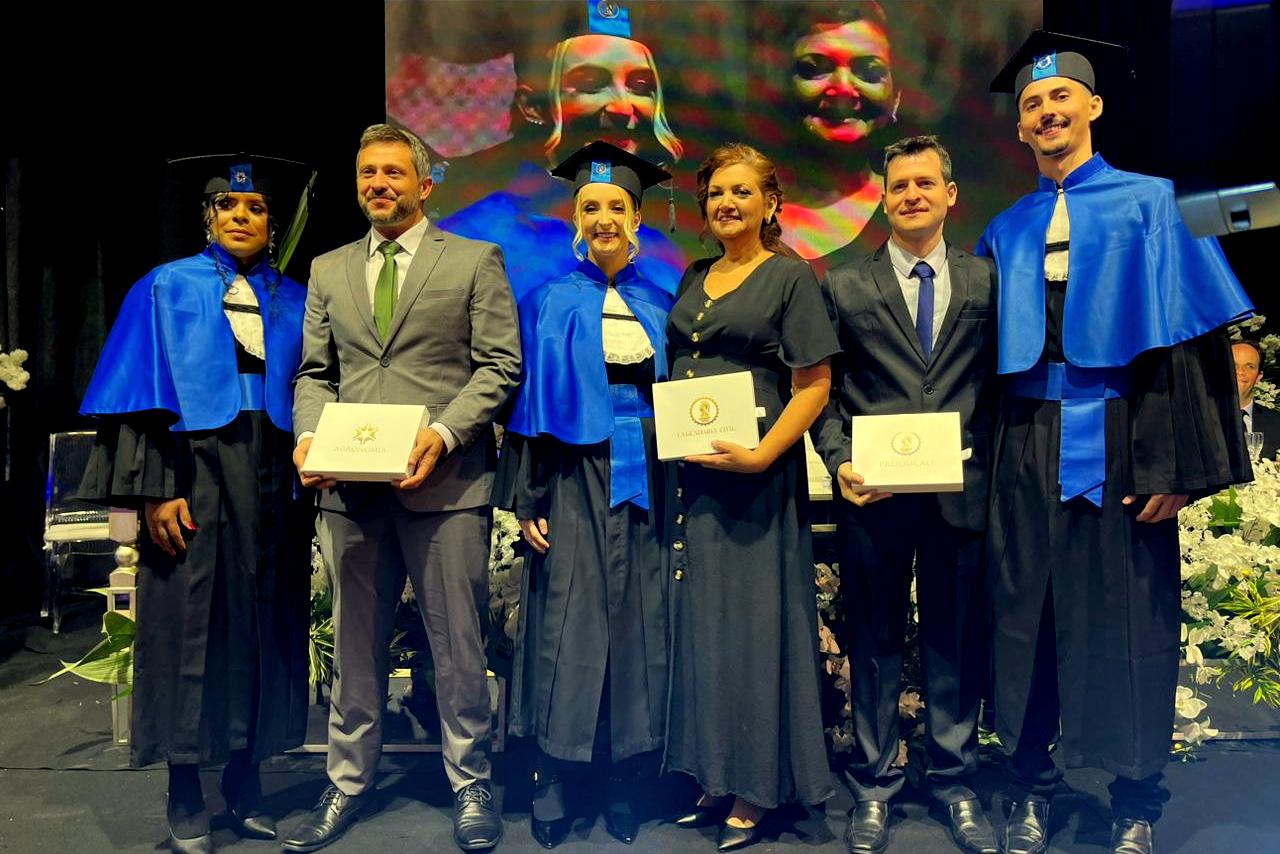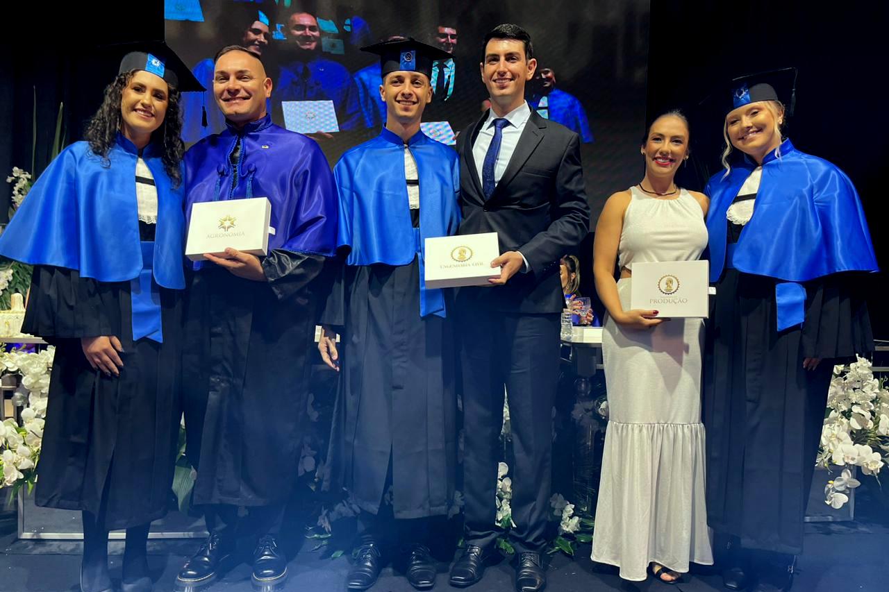Participaram da cerimônia de formatura, além do reitor do Unibave, o pró-reitor acadêmico, Leonardo de Paula Martins, a diretora de cultura da Instituição, Edina Furlan, a coordenadora do curso de Agronomia, Janaina Veronezi Alberton; a coordenadora do curso de Engenharia Civil, Camila Lopes, a coordenadora do curso de Engenharia de Produção, Camila Machado de Oliveira.