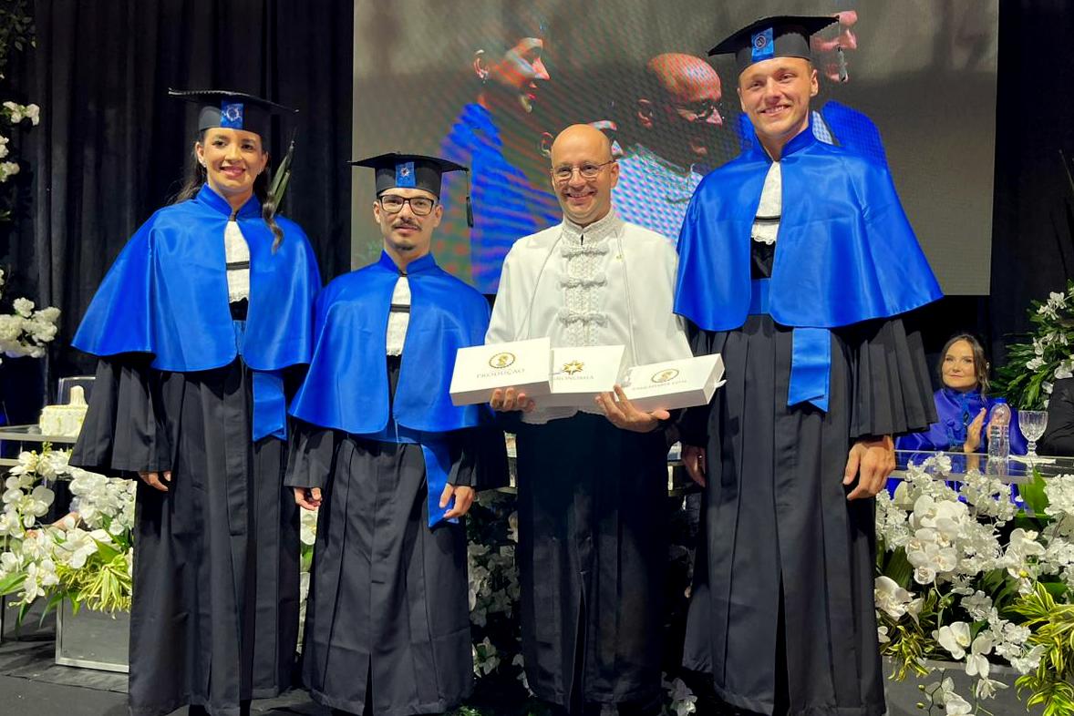 O reitor do Unibave, Guilherme Valente de Souza, parabenizou os formados pela conquista e pelo momento especial de felicidade. Valente deixou a Instituição aberta para auxiliar no que precisarem e para cursarem uma especialização.