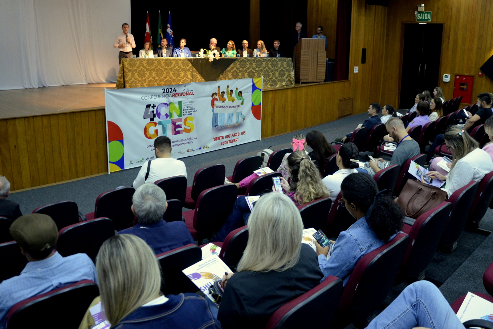 O município de Nova Veneza foi o cenário escolhido para sediar a etapa regional da 4ª Conferência Nacional de Gestão do Trabalho e da Educação na Saúde (CNGTES), realizada na quarta-feira (25/04). O evento reuniu representantes dos usuários do Sistema Único de Saúde (SUS), profissionais, prestadores de serviço e gestores de saúde dos municípios da região Carbonífera, destacando a importância do tema escolhido para esta edição: “Gente que faz o SUS acontecer”.