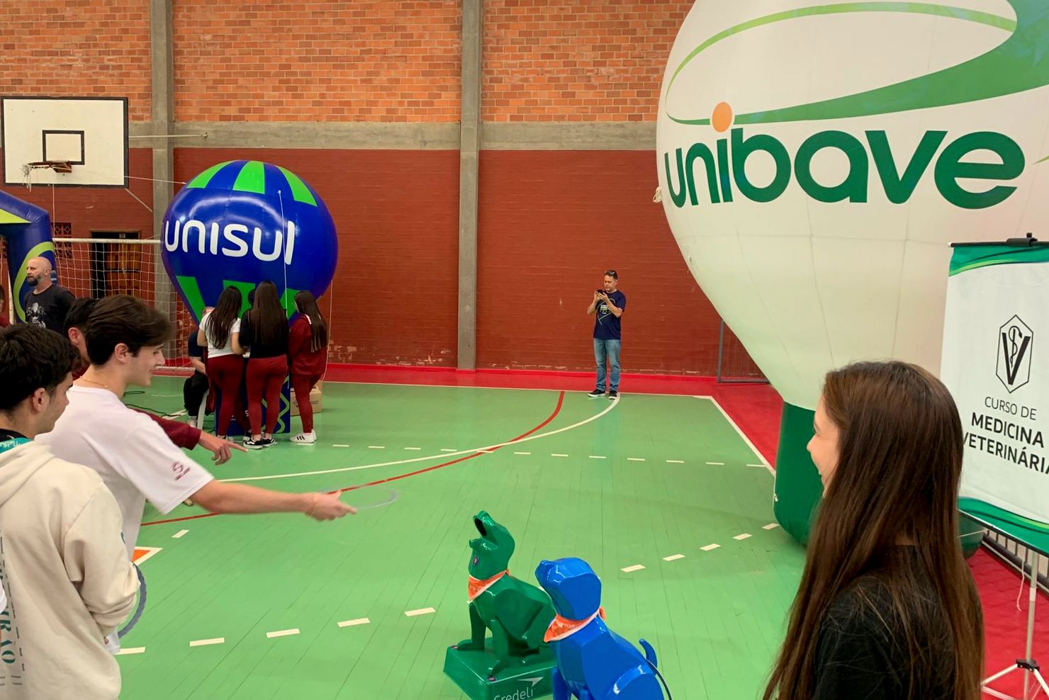Na tarde de segunda-feira (12/05) o Centro Universitário Barriga Verde (Unibave) esteve presente na 3ª edição da Feira das Profissões do Colégio São José, em Tubarão. Esta foi a segunda participação do Unibave no evento, que reuniu diversas instituições de ensino da região. Uma dinâmica interativa foi proposta pelo curso de Medicina Veterinária, onde em caso de acerto da argola, recebia um brinde especial.