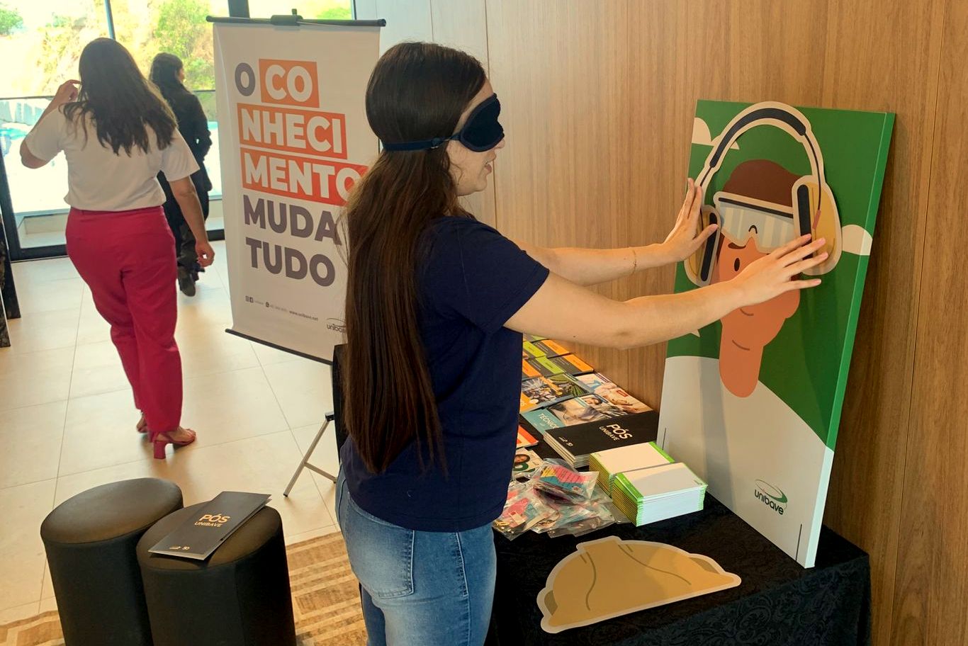 O Unibave levou ao evento um estande com materiais informativos sobre bolsas de estudo, cursos de pós-graduação, cursos livres, além dos cursos técnicos e de graduação. Representaram a instituição a coordenadora dos cursos de Engenharia de Produção, Engenharia Mecânica e Técnico em Segurança do Trabalho, Camila Oliveira, e a coordenadora de Relacionamento, Samira Custódio.