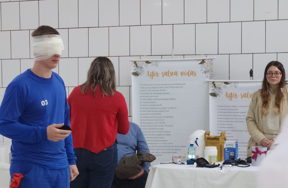 A professora do Unibave, Gabriela da Silva Kuelkamp, acompanhou a equipe expondo equipamentos da área da saúde e aferindo a pressão dos colaboradores. Uma atividade do curso de Psicologia sobre a valorização pessoal e autocuidado ainda foi aplicada.