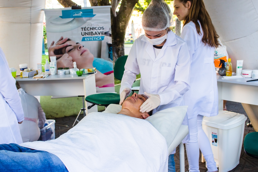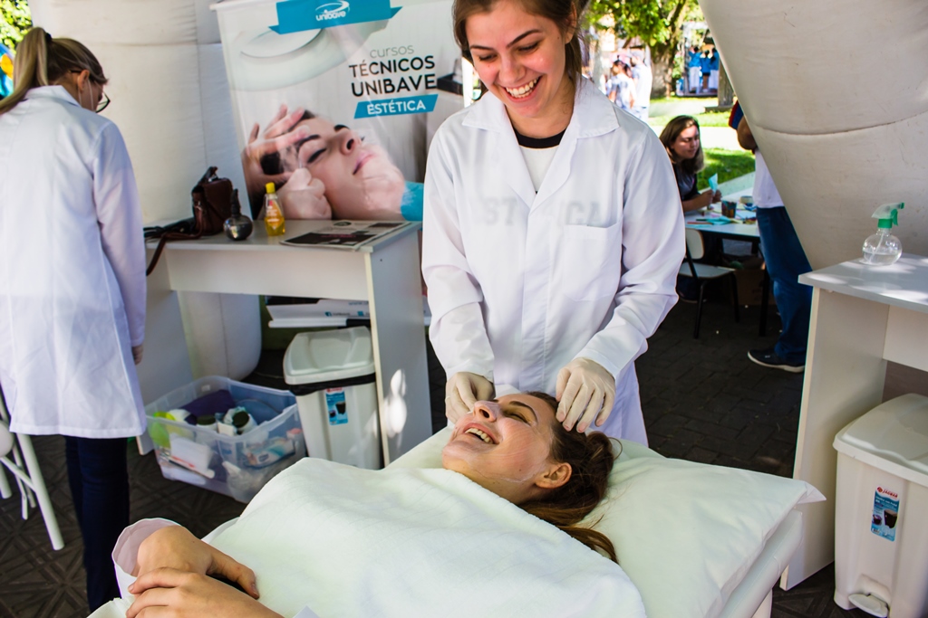 Na ocasião, o Curso Técnico de Estética do Unibave ofereceu às mamães e aos demais que estavam no evento trabalhos de estética facial e conscientização sobre a importância dos cuidados diários com a pele frente ao alto índice de câncer de pele que há na região.
