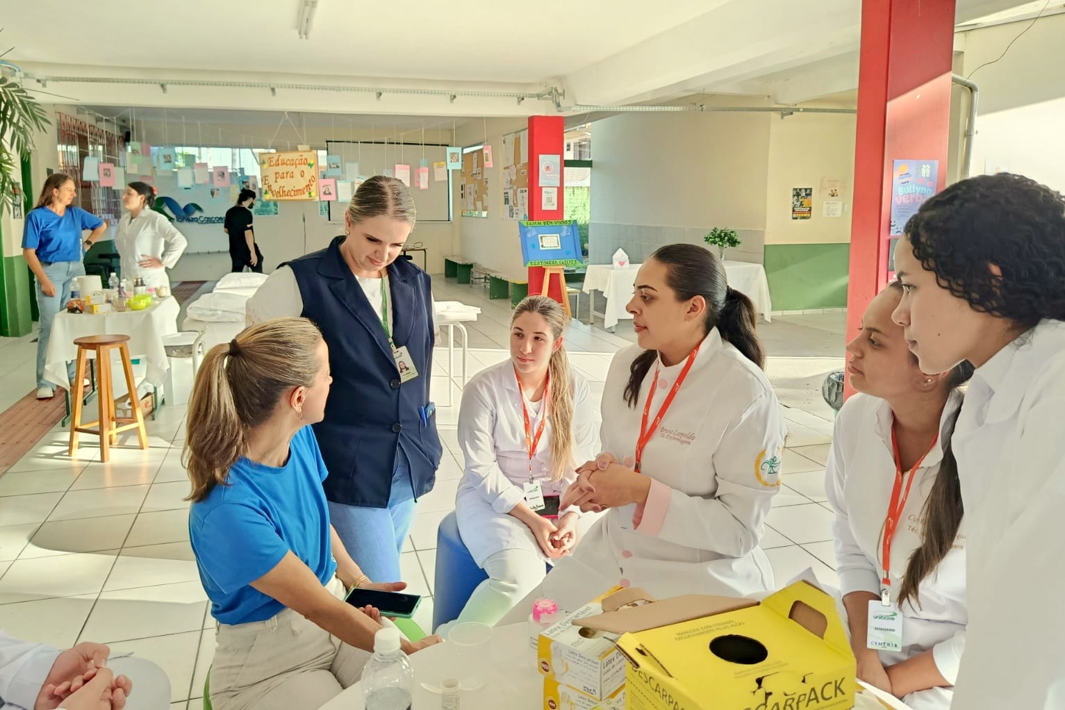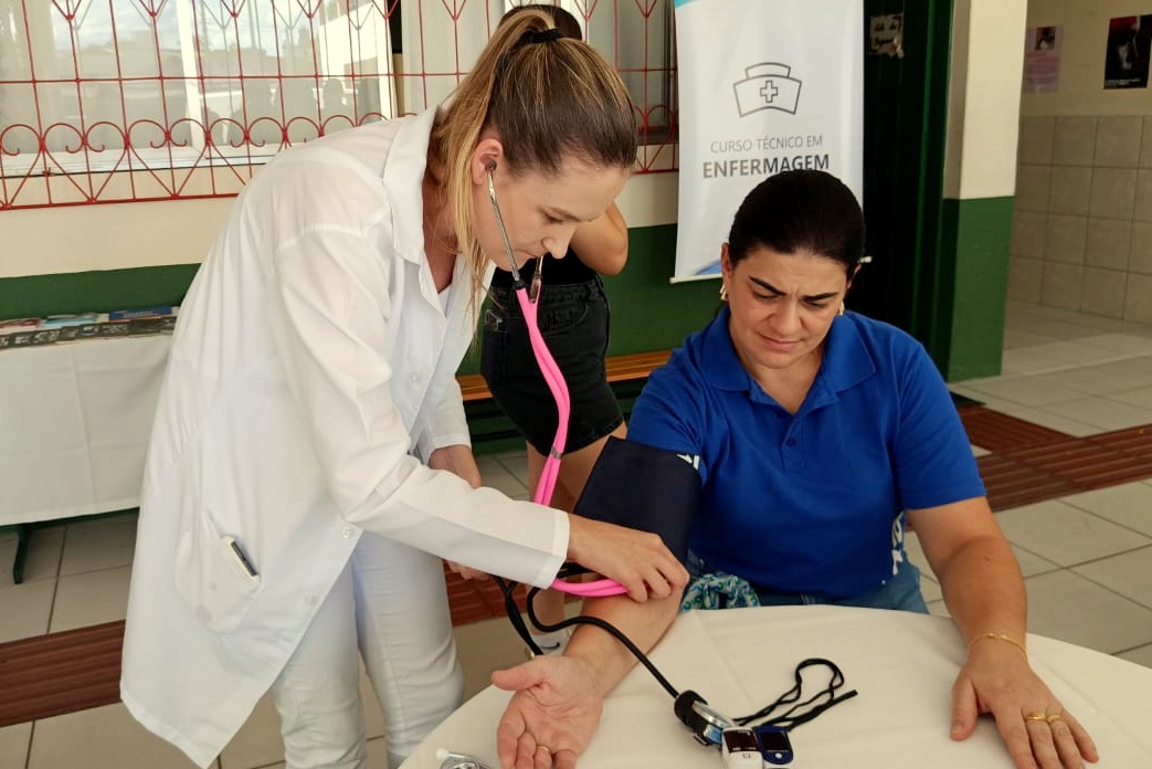 Já na Escola Toneza Cascaes, em Orleans, a ação aconteceu no período da tarde, com ações desenvolvidas pelo Centro Tecnológico (CETEC), com foco em saúde e bem-estar. A atividade contou com a presença de professores, acadêmicos e estudantes dos cursos técnicos em Enfermagem e Estética, além da coordenadora do CATEC, Jaque Fortunato.