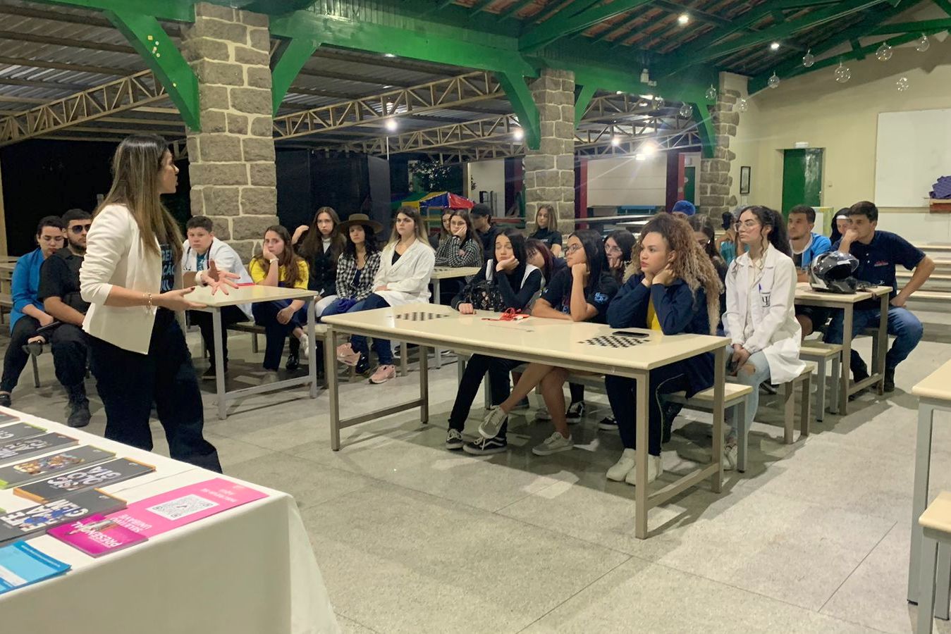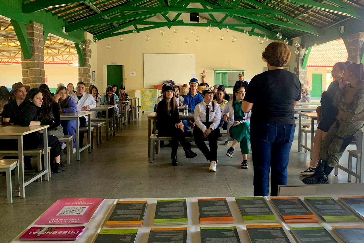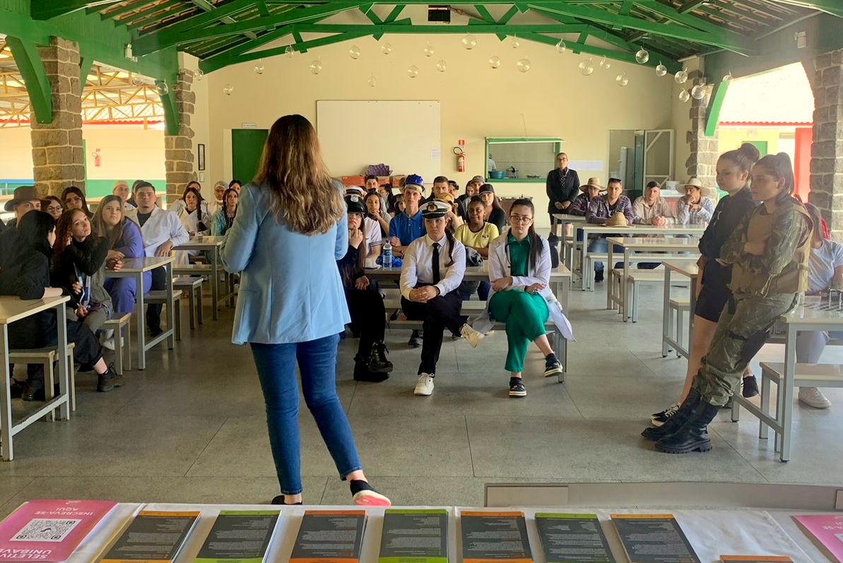 “Este espaço de fala e presença dos nossos profissionais na escola tem como objetivo incentivar e inspirar as turmas que estão na reta final do ensino médio a buscarem novas oportunidades no mercado de trabalho, dando continuidade nos seus estudos para estarem cada vez mais preparados para as diversas profissões que possam seguir”, comentou a colaboradora do setor de relacionamento do Unibave, Aline Michilin Bento.