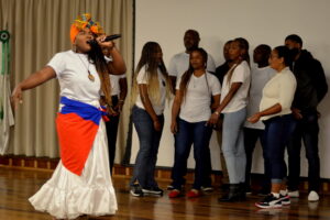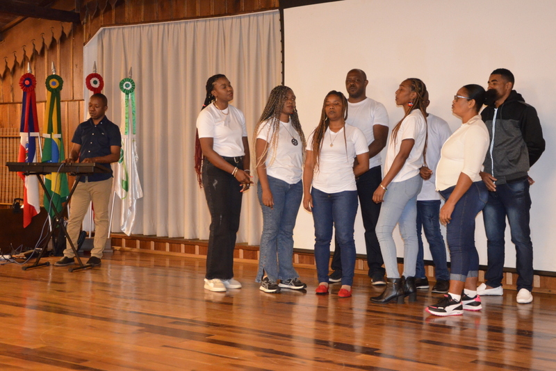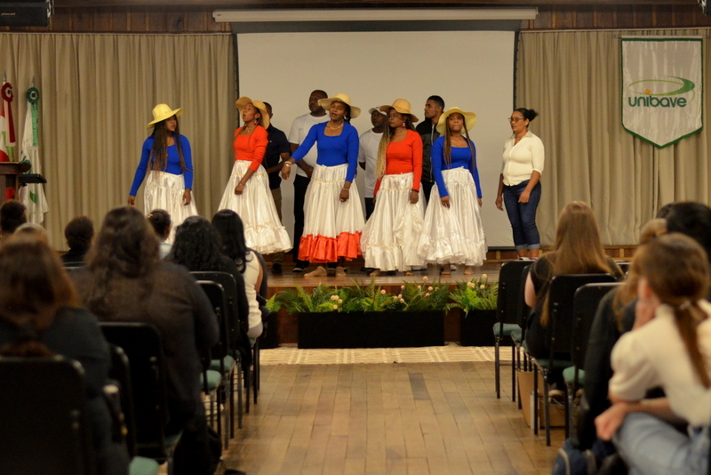 O evento teve música e dança, com a participação do Coral de Haitianos de Orleans, que emocionou o público com músicas de matriz africana, destacando ancestralidade e resistência. Logo depois, o professor Rodrigo Garcia compartilhou relatos das intervenções pedagógicas realizadas por acadêmicas do curso de Pedagogia do Unibave, em escolas da região, por meio do projeto “Saberes e Fazeres Afrodescendentes”.