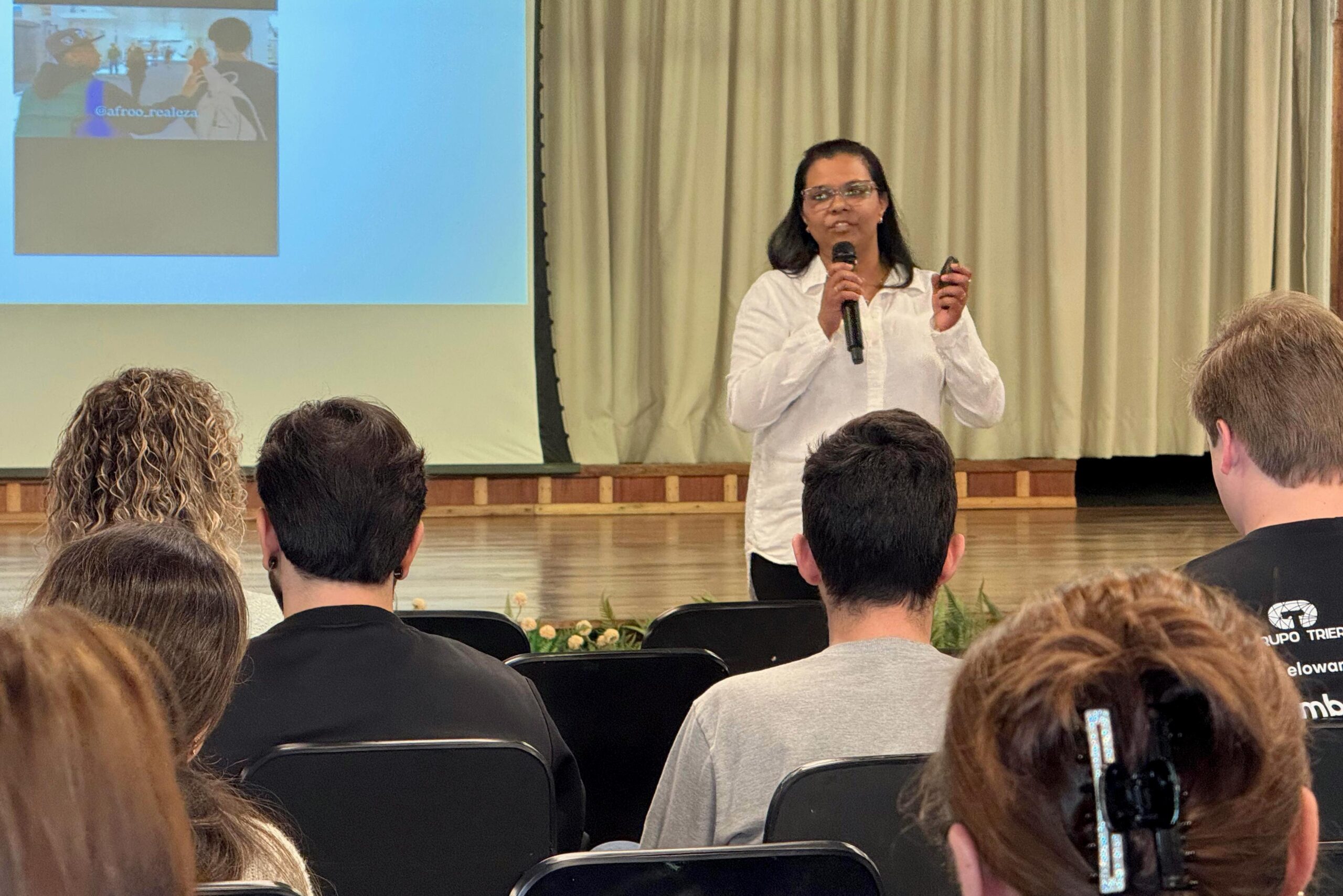 Um dos cursos ministrados aos colaboradores foi o de Letramento Racial, conduzido pela professora Marleide Reis de Araújo Santos Leopoldin. Ela reforça que o Brasil é um país de extensão territorial gigantesca, com uma diversidade cultural ampla e distinta entre as regiões. “Precisamos compreender o que é o letramento racial, seja nas questões relacionadas aos processos da área quilombola ou da área indígena. Assim, podemos compreender, nomear e reafirmar questões que muitas vezes são vivenciadas e ignoradas”, afirma a professora. Segundo ela, o letramento não transforma por si só, mas o conhecimento pode impulsionar processos de transformação local no enfrentamento ao racismo.