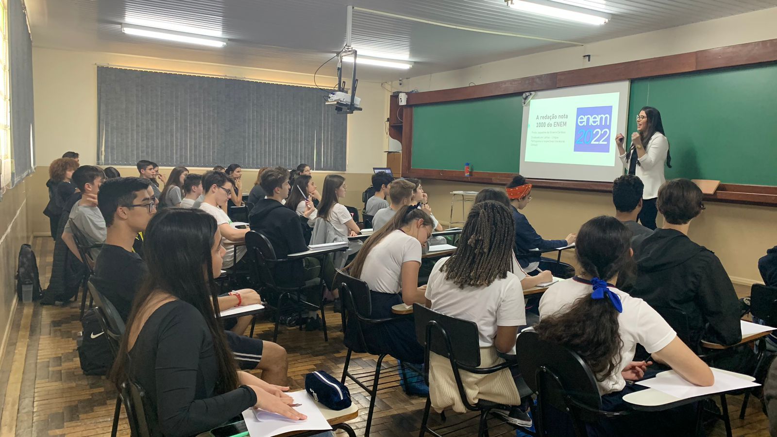 Estamos a duas semanas e meia para a primeira prova no Exame Nacional do Ensino Médio (ENEM) de 2022, marcadas para os dias 13 e 20 de novembro. Nesse momento os alunos focam na preparação. E, nesta semana, (24/10) em Urussanga, parceria com o Colégio Monsenhor Agenor Neves Marques, o Centro Universitário Barriga Verde (Unibave) realizou um aulão preparatório voltado para redação, aberto a toda comunidade.