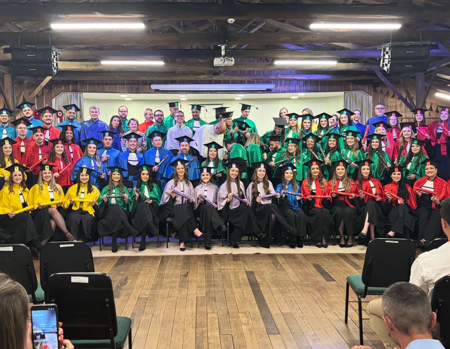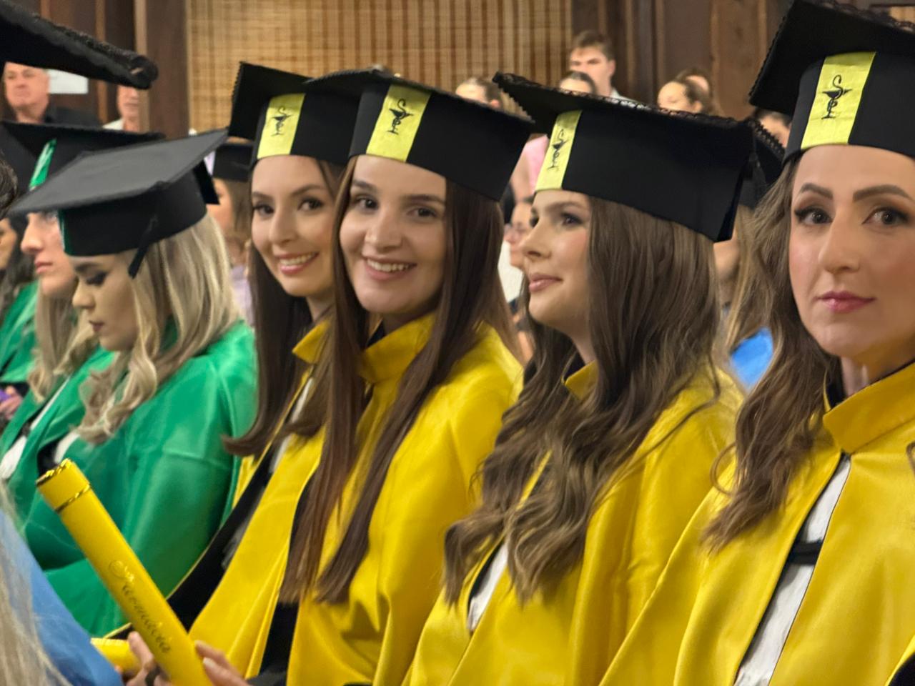 Receberam o grau acadêmico 15 formandos do curso de Medicina Veterinária; 12 em Direito; sete no curso de Farmácia; cinco em Ciências Contábeis; quatro em Pedagogia; três na Licenciatura em Educação Física; três no Bacharelado em Educação Física; três em Enfermagem; três em Sistemas de Informação; dois em Agronomia; um no curso de Administração; um em Engenharia de Produção; um em Engenharia Civil; e um no curso de Psicologia.