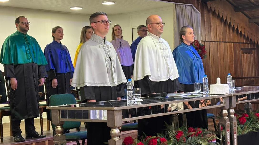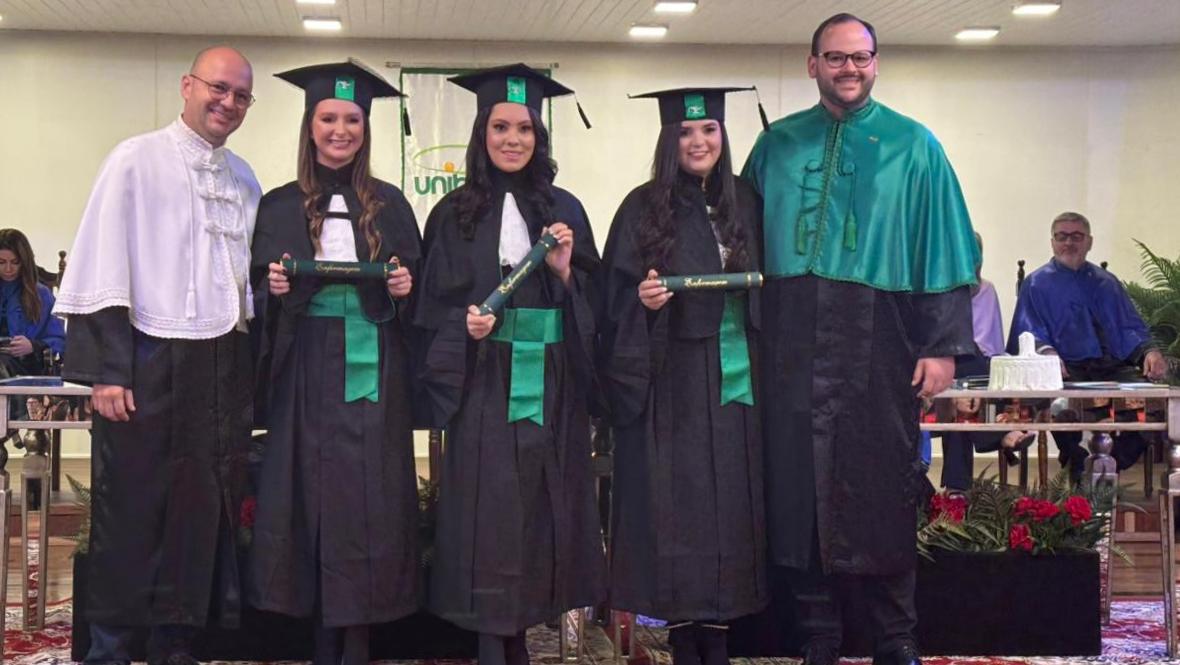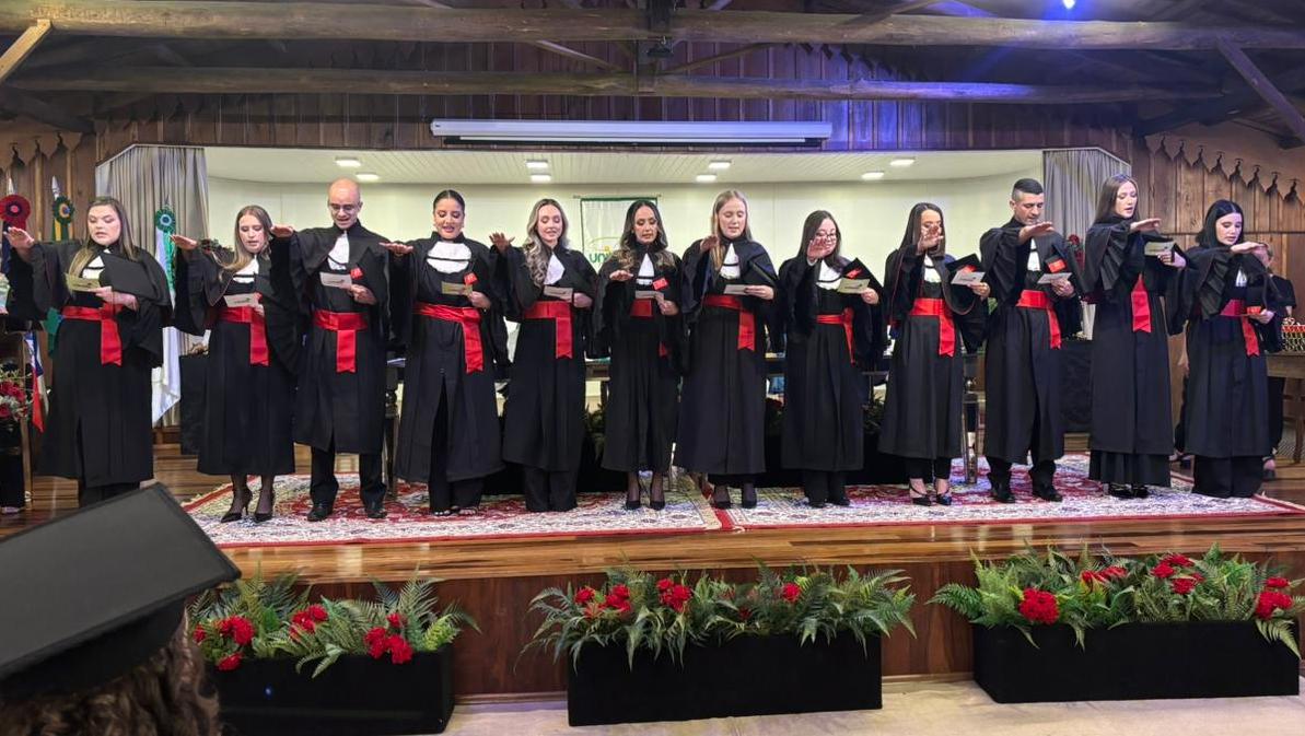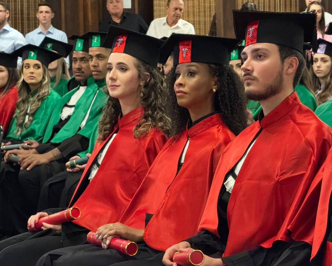 A cerimônia foi presidida pelo reitor do Unibave e coordenador do curso de Medicina Veterinária, Guilherme Valente de Souza, que parabenizou os formandos. “Cada diploma entregue hoje representa dedicação, esforço e o compromisso do Unibave em formar cidadãos preparados para atuar com ética, responsabilidade e sensibilidade social”, afirmou.