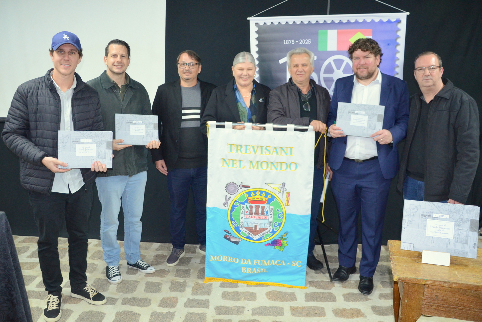 O salão da capela do Museu ao Ar Livre Princesa Isabel, em Orleans, localizado no campus do Centro Universitário Barriga Verde (Unibave), recebeu, nesta segunda-feira, dia 25, um público de mais de 50 pessoas que prestigiaram o lançamento do livro 150 anos da Grande Imigração Italiana em Santa Catarina. Quatro dos nove autores da obra estiveram presentes, compartilhando detalhes sobre o trabalho realizado.