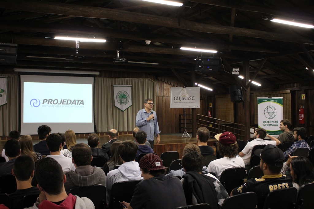 Este ano a Semana Acadêmica trouxe como tema “Tecnologia x Mercado de Trabalho” e contou com a participação dos acadêmicos de Sistemas de Informação, professores e empresários da região.